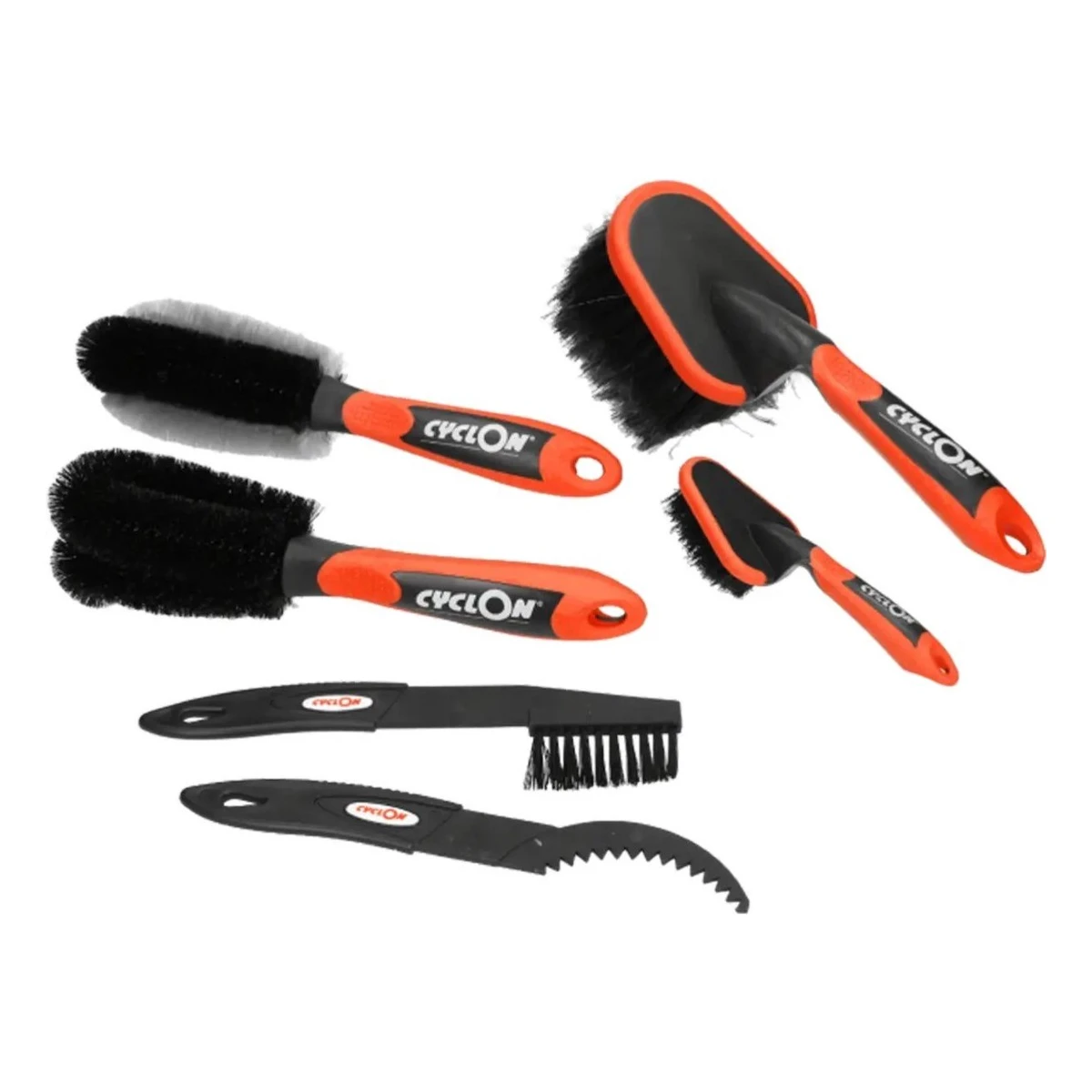 Complete borstelset met zes borstels speciaal ontwikkeld voor het reinigen van de fiets.