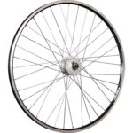 Handgevlochten voorwiel Ryde Zac-19 Shimano DH-C3000 – 3 Watt 6 Volt geschikt voor velgrem. Inbouw 100mm, aslengte 140mm, 36 spaken.